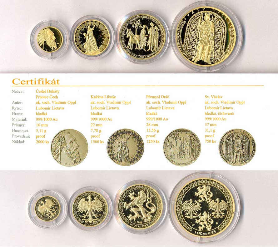 | 6. | Praotec Čech, kněžna Libuše, Přemysl Oráč, sv. Václav, sada České dukáty,