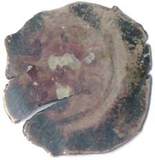 spojený 3 a 4 měsíček, naprasklý ražbou, patina |