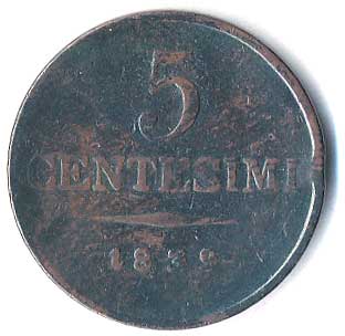 | 246. | 5 Centesimi 1839 V | 2/2 | 360,- | --.- |