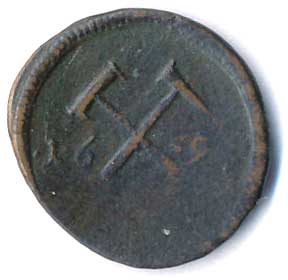 | 261. | Důlní známka 1698, Smolník, korunované L, ratolesti / zkřížená kladívka,
