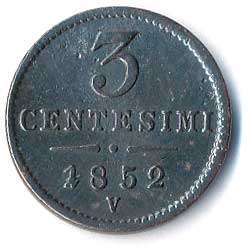 | 302. | 3 Centesimo 1852 V | 1/1 | 100,- | --.- |