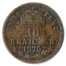 | 316. | 10 Krejcar 1875 KB, dobový padělek, poťukaný | 2/2 | 50,- | 160,- |