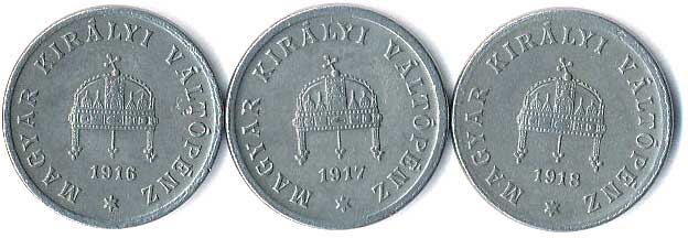 | 351. | 2 Fillér 1916, 1917, 1918, 3ks | 0-1 | 1200,- | 1200,- |