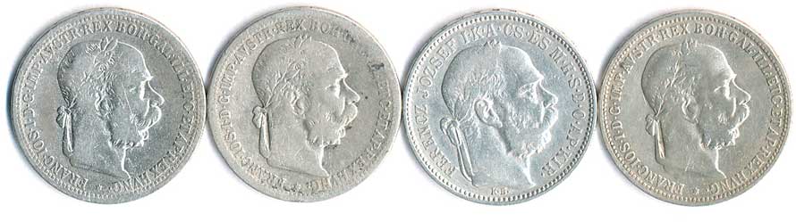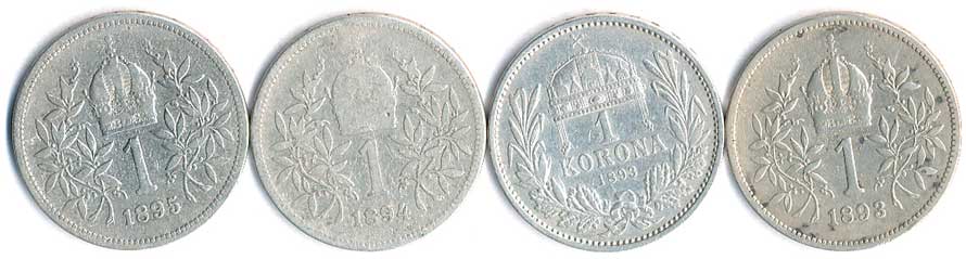 | 361. | 1 Koruna 1893, 1893 KB, 1894, 1895, 4ks | 1-2- | 420,- | 420,- |