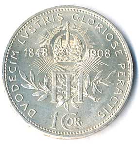 | 364. | 1 Koruna 1908, jubilejní, 60 let vlády, plocha téměř PROOF | 0/0 | 180,- | 280,- |