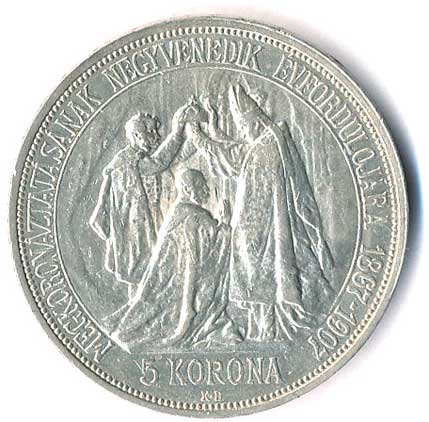 | 375. | 5 Koruna 1907, 40.výr. korunovace na uherského krále, plocha PROOF | 0/0 | 3600,- | --.- |