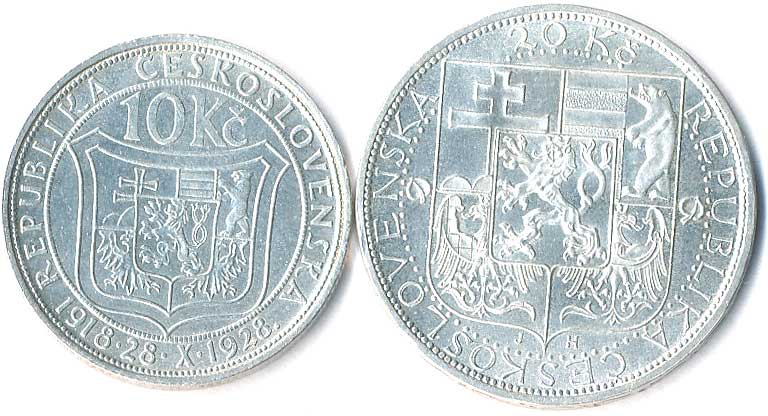 | 457. | 10 Kč 1928 TGM, 20 Kč 1937 TGM, Ag, 2ks | 0/0 | 390,- | --.- |