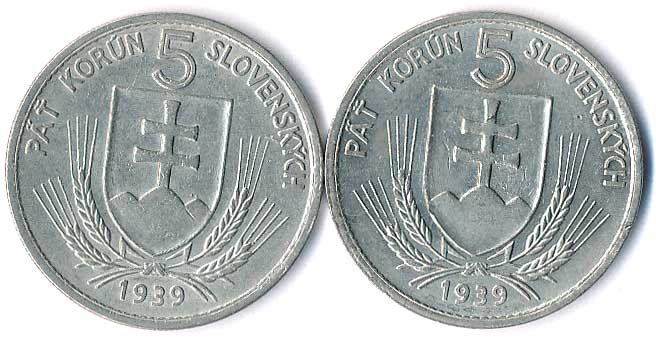 | 488. | 5 Ks 1939, varianty: slabá a silná čárka nad A, 2ks | 0-1 | 70,- | 130,- |