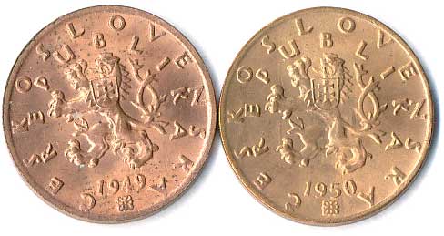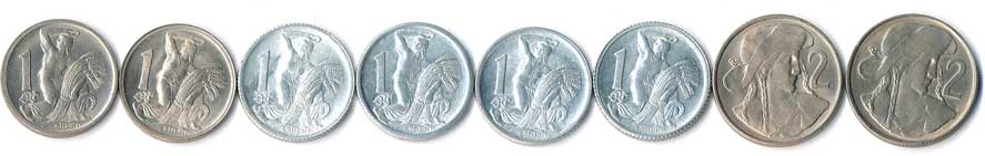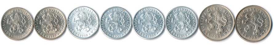 | 500. | 1 Kčs 1946,1947,1950,1951,1952,1953, 2 Kčs 1947,1948, 8ks | 0/0 | 340,- | 340,- |