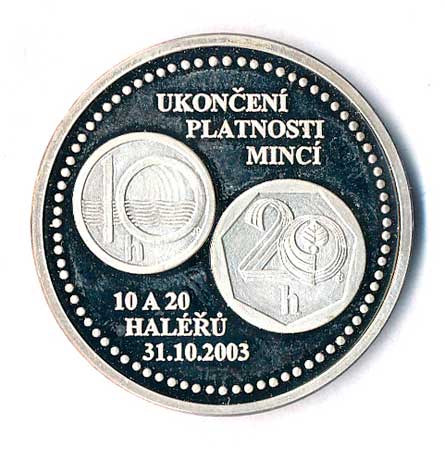 | 642. | 50 haléřů, madaile na ukončení platnosti 31.8.2008, Ag35/15g, certifikát | PROOF | 380,- | --.- |
