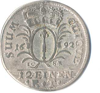 | 713. | 1/12 Thaler 1692 | 1-1- | 280,- | 380,- |