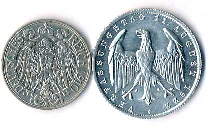 | 745. | 25 Pf.1910 A, 3 Mk 1922 A, 3 roky výmarské ústavy | 0-1 | 200,- | --.- |