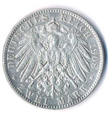 | 765. | 2 Mk. 1908 E, Sasko, Friedrich August | 1-1- | 500,- | --.- |