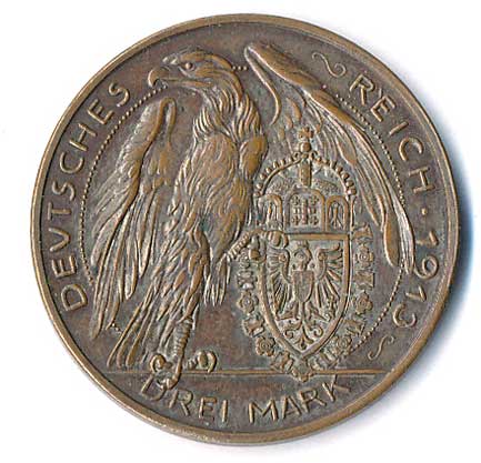 | 780. | 3 Mk. 1909 A, Prusko, Wilhelm II. | 1/1 | 400,- | --.- |