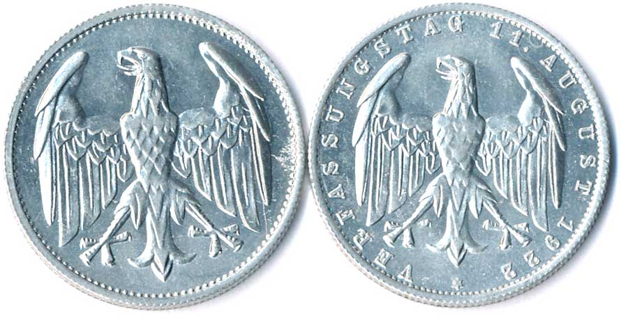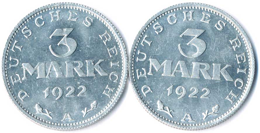 | 791. | 3 Mk. 1922 A, 2 typy, orlice s opisem a bez opisu, 2ks, téměř | 0/0 | 50,- | --.- |