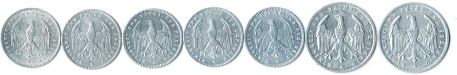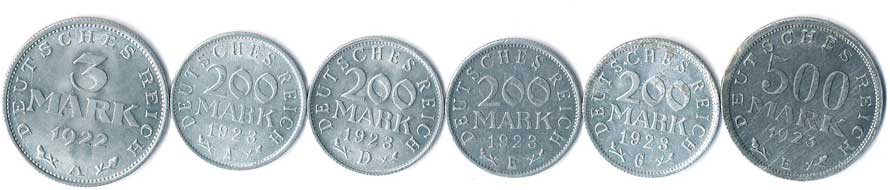 | 792. | 3 Mk. 1922 A, 200 Mk.1923 A,D,E,G, 500 Mk.1923E, n.kor., 6ks | 0-1 | 90,- | --.- |