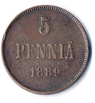 | 808. | 5 Penniä 1889, hr. | 1-1- | 150,- | 170,- |
