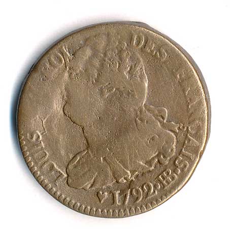 | 821. | 2 Sols 1792 srdce-BB, Félix de Reiset-Strasbourg, vada ražbou | 1-2 | 50,- | 100,- |