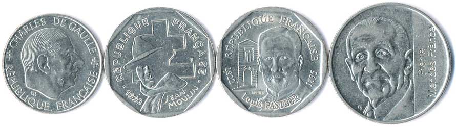 | 823. | 1 Fr.1988, Charles de Gaule, 2 Fr.1993, Jean Moulin, 2 Fr.1995, Louis Pasteur,