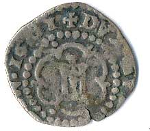 | 836. | Soldino 1601, stylizovaný zámek v Janově, opis: +DVX.GVB.REIP.GEN /