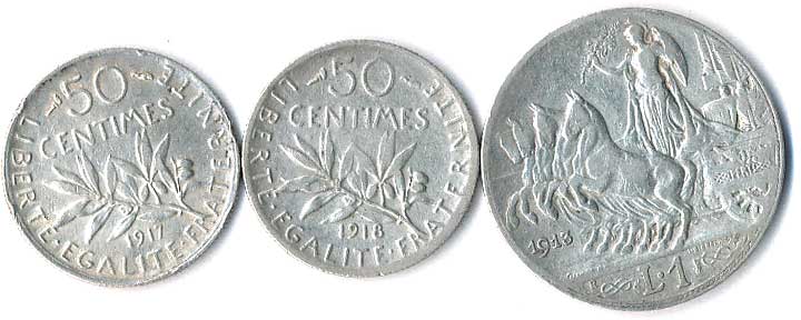 | 841. | 1 Lira 1913, Francie, 50 Centimes 1917,1918, 3ks | 1-1- | 220,- | --.- |