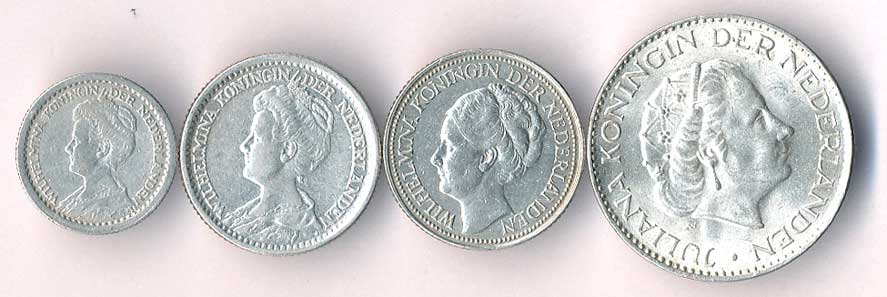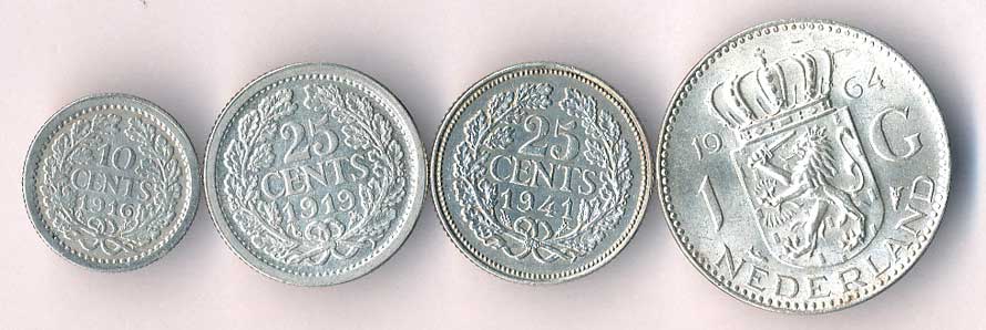 | 857. | 10 Cents 1916, 25 Cents 1919,1941, 1 Gulden 1964, Ag, 4ks | 0-1 | 230,- | --.- |
