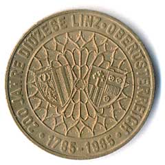 | 876. | 20 Schilling 1993, 1785-1985, Linec, 200.výročí diecéze, patina | 0/0 | 50,- | 50,- |