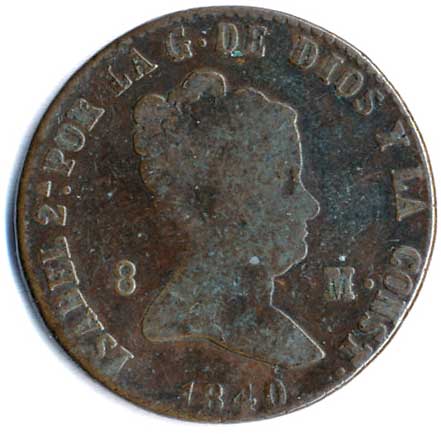 | 912. | 8 Maravedis 1840, Isabel II. 1836-1858 | 1-2- | 130,- | --.- |