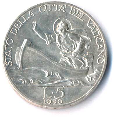 | 939. | 5 Lira 1930, Ag, sv. Petr na lodi během bouře na Galilejském jezeře | 0/0 | 280,- | 380,- |