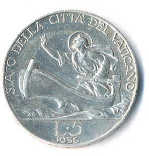 | 940. | 5 Lira 1936, Ag, sv. Petr na lodi, násilně vyleštěný | 1-/1- | 250,- | --.- |