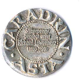 | 950. | Ag Penny - Richard Lví srdce (1189-1199), replika averzu mince,