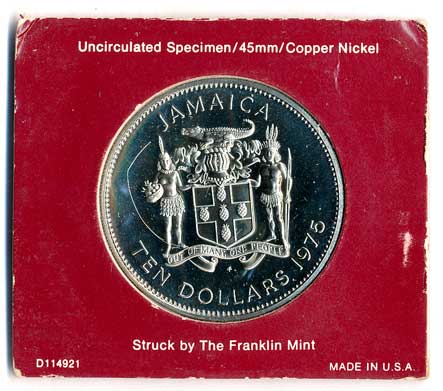 | 966. | 10 Dollars 1975, Kryštof Kolumbus, objevení Jamajky 4.5.1494 | 0/0 | 150,- | 190,- |