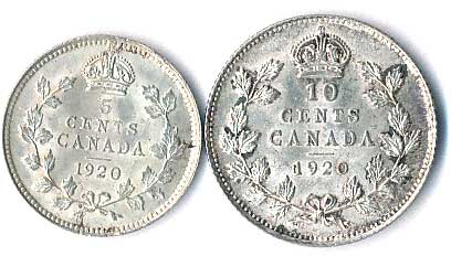 | 967. | 5 Cents 1919, 10 Cents 1920, Georg V., n.koroze, 2ks | 0-1 | 70,- | 150,- |