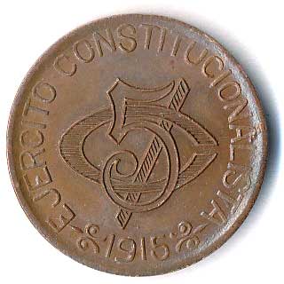 | 973. | 5 Cent 1915, konstituční armáda, skvrnka | 0-1 | 150,- | 150,- |