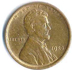 viz "Numista" 1 Cent 1920 Pattern, lehká patina |