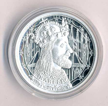 | 1525. | Karel IV. - upomínková medaile - poprsí císaře Karla, v pozadí gotický chrám /