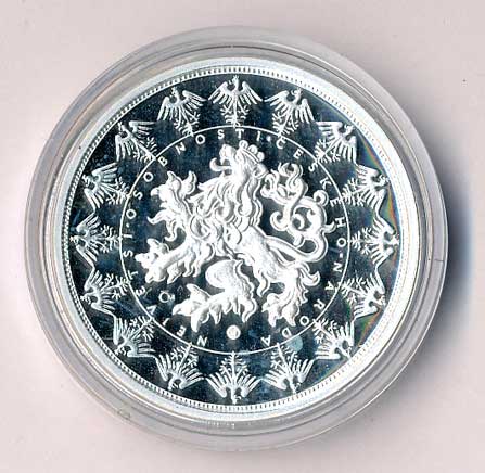 český lev zleva, po obvodu orlice, Ag 999 40/30g, etue |