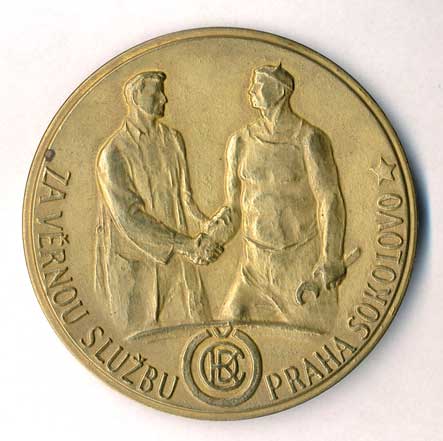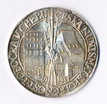 | 1599. | ČNS Praha - medaile k 80.výročí založení - mince s číslicí 80 na dlani, opis /