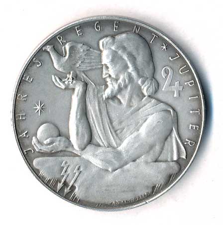 | 1576. | Roční vládce Jupiter, kalendář 1959-Jupiter na nebesích, v ruce holubice, opis /