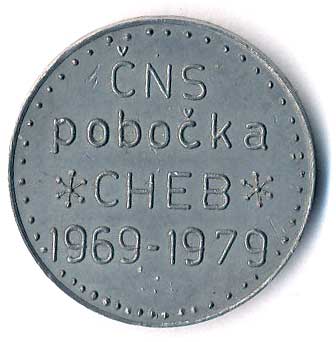 | 1586. | ČNS Cheb-10 let pobočky 1969-1979-třířád.náp., datace / Eger 1745, Sn26,