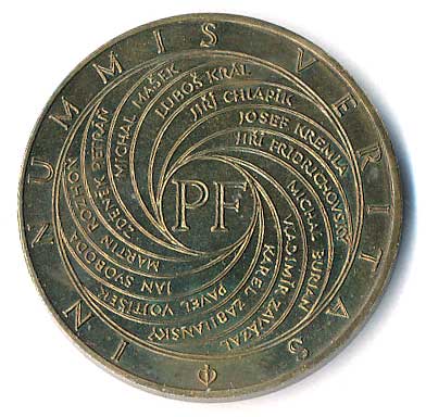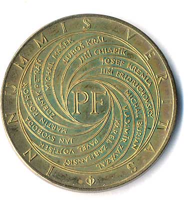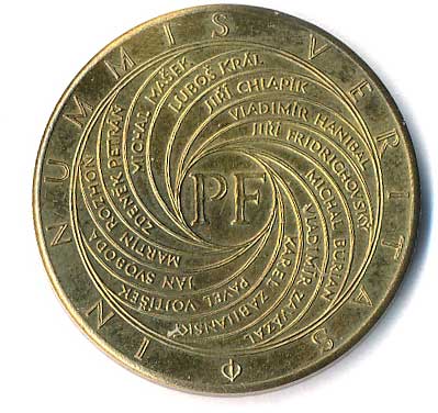 PF, z něho vystupující jména, opis IN NUMMIS VERITAS, Br30, (Oppl Vladimír) |
