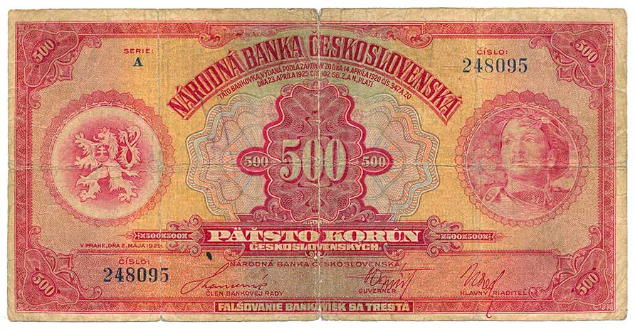| 2024. | 500 Kč 1929, s.A, dotisk čárky MÁJA | 3-4 | 3000,- | --.- |