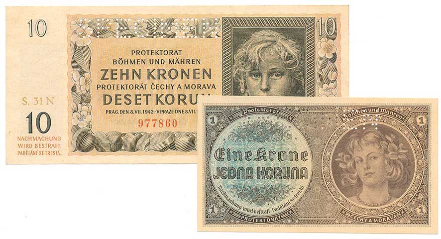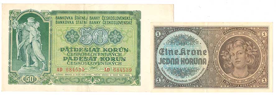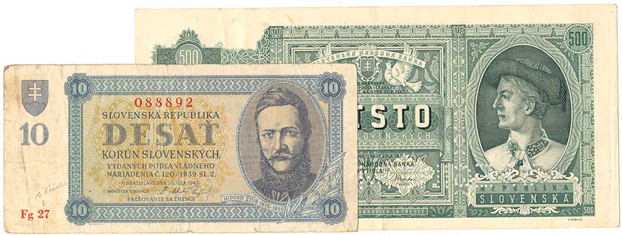 | 2044. | 10 Ks 1939 s.Fg27, 500 Ks 1941, 2x SPECIMEN dole, 2ks | 3 | 80,- | 300,- |