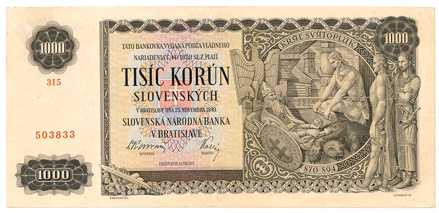 | 2046. | 1000 Ks 1940 s.3I5, vlevo na Rv. nepatrné zažloutlé skvrnky | 1 | 1600,- | --.- |