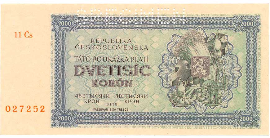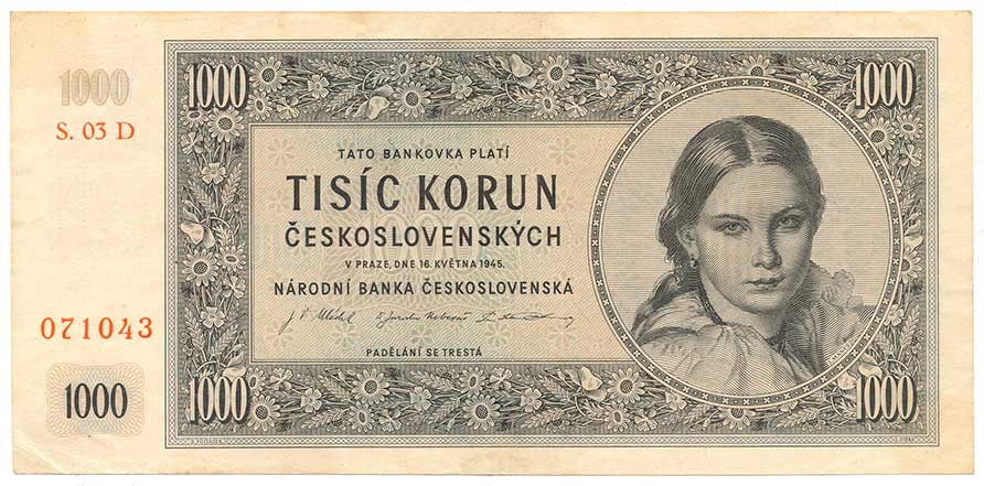 | 2078. | 1000 Kčs 1945 s.03D | 2 | 700,- | 700,- |