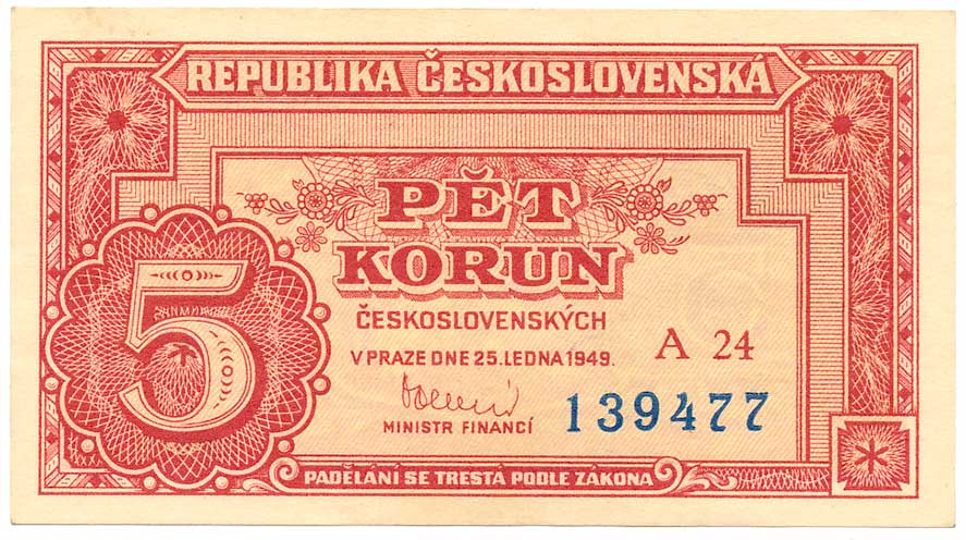 | 2060. | 5 Kčs 1949, s.A104, tříčíselná řada | N | 100,- | 170,- |