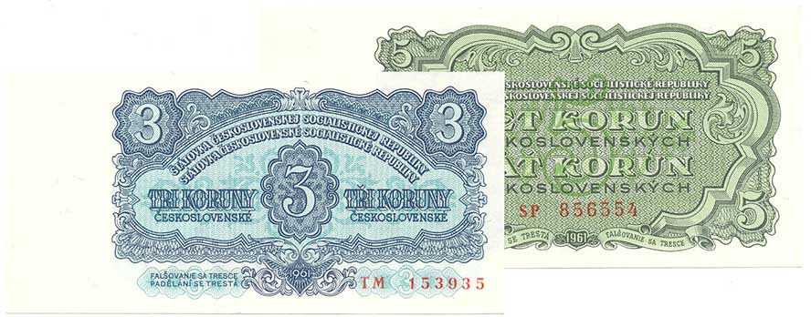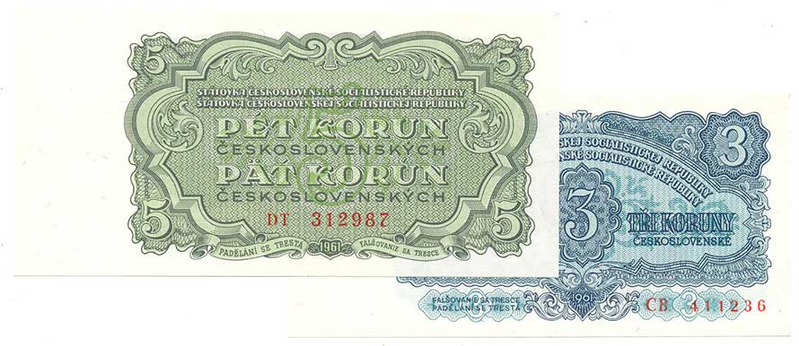 | 2088. | 3 Kčs 1961 s.CB, 5 Kčs 1961 s.DT, 2ks | N | 140,- | 140,- |