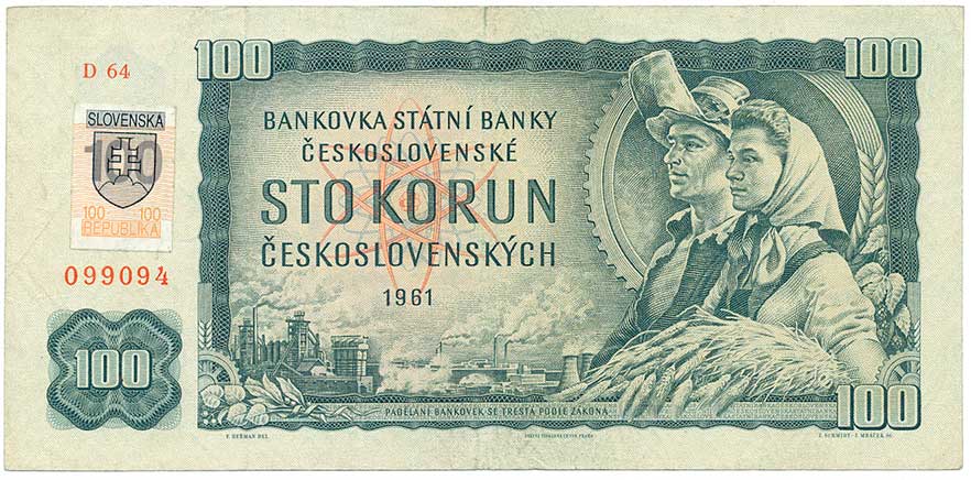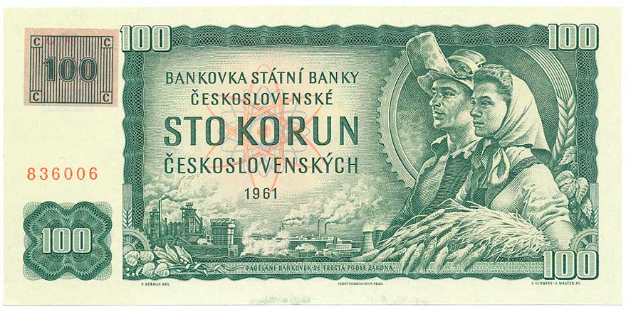 | 2101. | 100 Kčs 1961 s.G93, lepený kolek | N | 300,- | 300,- |