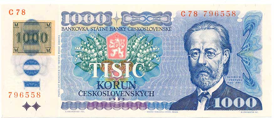 | 2103. | 1000 Kčs 1985 s.C78, lepený kolek | N | 1000,- | 1200,- |