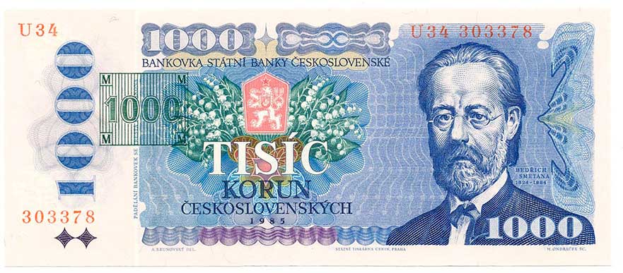 | 2105. | 1000 Kčs 1985 s.U34, tištěný kolek | N | 1000,- | 1100,- |